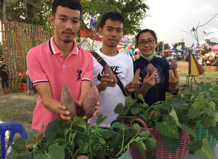 ที่งาน ถนนคนเดิน หน้าวัดระหารไร่ ตำบลหนองบัว อำเภอบ้านค่าย จังหวัดระยอง ชาวบ้านจำนวนมาก ต่างพากันมาดูต้นมันที่ปลูกอยู่ในหลัวหรือในเข่ง อย่างตื่นเต้น และแปลกใจในผลผลิตและคุณภาพที่ได้ออกมาเป็นอย่างดี ซึ่งโครงการดังกล่าว มีนายสุจินต์ สุขเกิด นายก อบต.หนองบัว นายชัชวาลย์ สุดภิบาล รองนายก อบต และ นายไตรภพ บันเทิงสุข ปลัดอบต.ริเริ่มและสนับสนุนโครงการ เพื่อส่งเสริมความรู้ และวิชาชีพให้ประชาชน