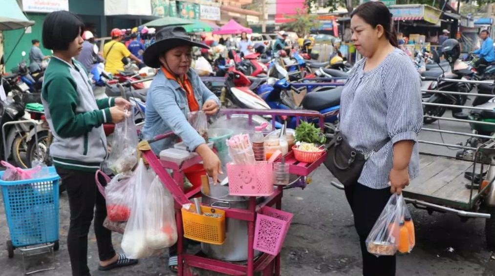นางสาววิมล พลฐาล อายุ 43 ปี แม่ค้าก๋วยเตี๋ยว ชาวจังหวัดอ่างทอง เล่าให้ฟังว่า ครอบครัวตนเองมีอาชีพหลักรับจ้างซักรีด ส่วนก๋วยเตี๋ยวขายเป็นรายได้ประมาณ 1 ปี โดยไปจ้างช่างต่อรถเข็นก๋วยเตี๋ยวขนาดมินิ ในราคา 1,000 บาท แล้วออกตระเวนขายก๋วยเตี๋ยวหมูน้ำตกใน จ.อ่างทอง และใกล้เคียง